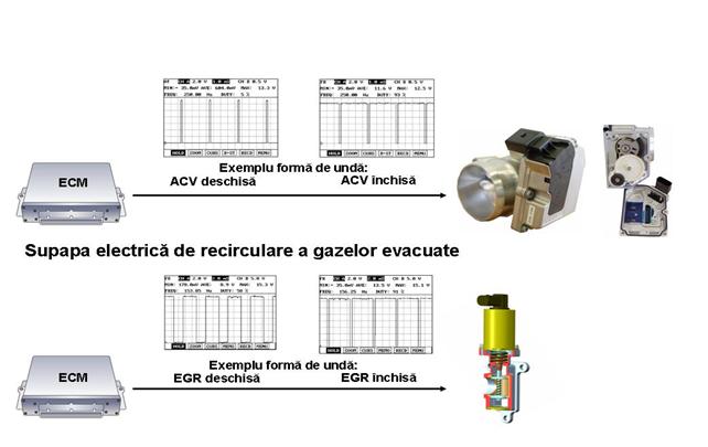 Functia anti-trepidatie: cand motorul este oprit, modulul de control al motorului poate preveni patrunderea aerului in conducta de admisie prin inchiderea completa a supapei dispozitivului de acceleratie pentru 1 5 secunde (95 raportul ciclic de actionare ) pentru reducerea vibratiilor motorului. Controlul aerului admis pentru recircularea gazelor evacuate: cand presiunea gazelor evacuate este egala cu sau mai mica decat presiunea aerului admis (de exemplu, la turatii joase ale motorului), gazele evacuate nu pot intra in conducta de admisie. În acest timp, modulul de control al motorului inchide partial supapa dispozitivului de acceleratie (5 raportul ciclic de actionare ) pentru a reduce cantitatea de aer admis. În acest fel, presiunea aerului admis devine mai mic decat presiunea gazelor evacuate.