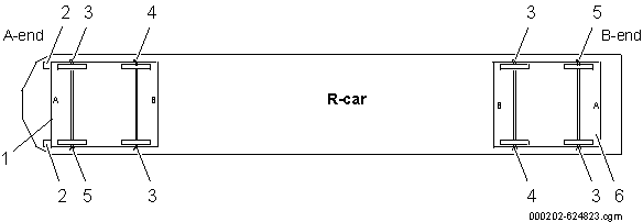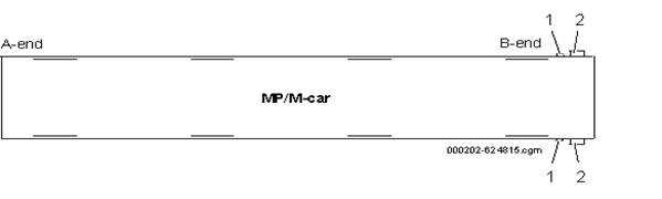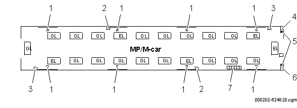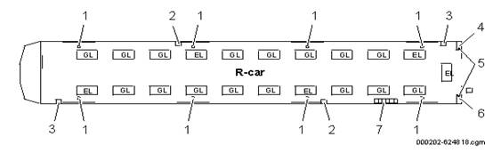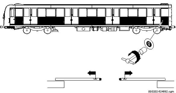 La capătul B al fiecărui vagon, există o lampă exterioară de culoare galbenă care indică poziția deschis/deblocat, vezi figura 6 și figura 7 . Ușile numărul 7 și 8 din toate vagoanele sunt conectate la dispozitivul de acces de urgență exterior printr-un cablu mecanic, vezi figura 6 și figura7 .