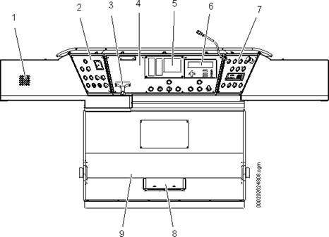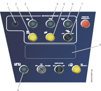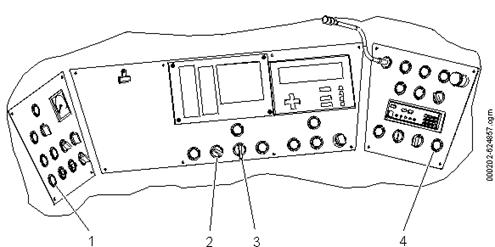 3.2. Pupitrul de conducerePupitrul de conducere, vezi figura 25 , include trei panouri de comandă ale căror funcții sunt în strânsă legătură. Fiecare panou conține un număr de butoane, unele având lumină de fundal și lămpi indicatoare. Pupitrul de conducere mai conține mânerul controlerului de bord și un difuzor. Pedala de supraveghere a mecanicului este amplasată sub pupitrul de conducere pe rezemătorul de picior. În butoanele cu lămpi indicatoare, semnificațiile modurilor de iluminare sunt următoarele: