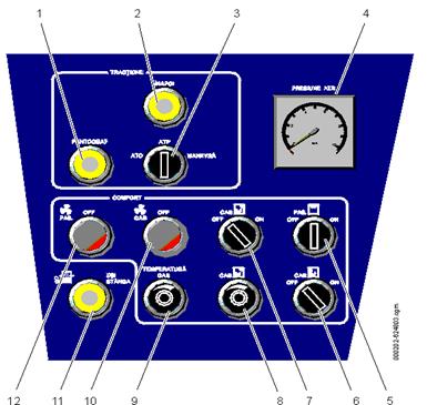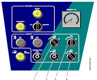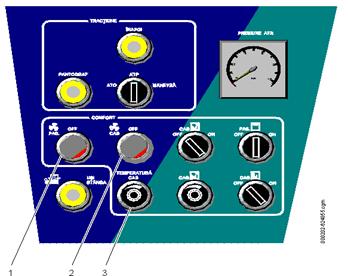 Buton cu lampă ON-OFF pentru ventilație compartimente pasageri. În poziția OFF, lampa este aprinsă. |