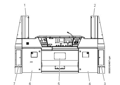 3. Descrierea cabinei mecanicului3.1. Prezentare generalăCabina mecanicului conține comenzile necesare pentru a manipula trenul în condiții normale de funcționare. Cele mai importante sunt cele trei panouri de comandă de la pupitrul mecanicului, cu comutatoare, butoane, lumini de control, vitezometru multifuncțional (MFSD) și unitatea de afișare a TDS. Figura 24 arată părțile principale ale panourilor și alte echipamente din cabina mecanicului.