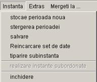 Deschiderea unei instante Generarea unei noi instante Copierea unei instante Redenumirea unei instante Stergerea unei instante Copiere extinsa unei instante Stergerea extinsa a unei instante Export = Exportul seturilor de date Export extins= Exportul datelor si structurii Import = Importul seturilor de date externe Cos de reciclare Cos de reciclare pentru subinstante Inchiderea Explorer-ului |