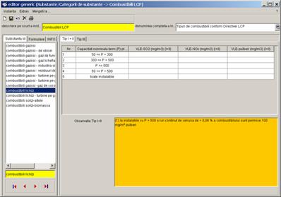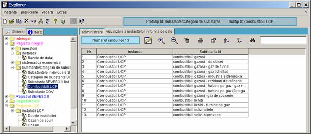 Daca in structura ramificata 1 este marcat un prototip ca de exemplu combustibili LCP, atunci seturile de date corespunzatoare se vor afisa in fereastra dreapta. |