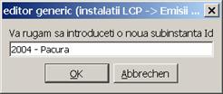 Pentru introducerea unui nou este de date, marcati inregistrarea S.C Rompetrol S.A Bucuresti - Rafinaria Vega de pe partea dreapta a Explorer-ului cu un dublu clic. In final veti fi intrebat asupra introducerii unei noi inregistrari. In Instalatii vor fi introduse unitati separate. Acestea pot fi atat o instalatie intreaga cat si mai multe instalatii, parti ale unei instalatii sau componente de instalatie insumate. Pentru setul de date dat exemplu in capitolul introduceti mai intai centrala termoelectrica si apoi cele cinci cazane cu aburi. |