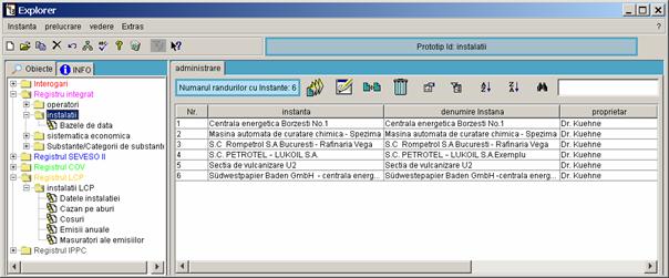 La foarte multe instalatii se poate ca afisarea datelor de baza sa fie foarte greu de vizualizat in ansamblu in Instante Vizualizare date Asftel ca veti merge cu cursorul pe eticheta Administrare. Acum fiecare instalatie este afisata doar o singura data. Cu un Dublu clic se poate deschide caseta formularelor. |