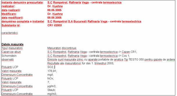 Imaginea 1: Constructia si structura generala a Registrului LCPImaginea 2: Constructia si structura aplicatiei pentru baza de date Imaginea 3: Vizualizarea Explorer-ului cu structura ramificata si afisajul seturilor de date Imaginea 4: Constructia Editorului Generic Imaginea 5: Schema a complexului de instalatii cu o instalatie LCP Imaginea 6: Crearea unei instante noi (a unui set de date inserat) Imaginea 7: Explorer cu o introducere noua de date (instanta) Imaginea 8: Caseta de introducere necompletata instalatii LCP datele instalatiei/datele instalatiilor Imaginea 9: Caseta completata Instalatii LCP Datele instalatiei/ Datele instalatiilor Imaginea 10: Caseta necompletata Instalatii LCP Datele Instalatiei/Datele instalatiilor Imaginea 11: Caseta completata Instalatii LCP-Anlagen Datele instalatiei/date tehnice Imaginea 12: Caseta Instalatiile LCP Datele instalatiei / Datele autorizatiei Imaginea 13: Caseta completata instalatii LCP datele instalatiei/alte date Imaginea 14: Caseta Instalatii LCP Cazane cu aburi/ Date tehnice Imaginea 15: Caseta Instalatiile LCP Cazan cu aburi/ Datele autorizatiei Imaginea 16: Caseta de inscriere pentru instalatiile LCP cosuri/date initiale Imaginea 17: Caseta de inscriere pentru Instalatiile LCP Emisii anuale / Datele emisiilor Imaginea 18: Caseta de inscriere pentru Instalatiile LCP masuratorile emisiilor/ datele masurate Imaginea 19: Caseta de inscriere necompletata pentru Operatori Date de baza/ Date de baza Imaginea 20: Caseta de inscriere completata pentru Operator Date de baza/Date de baza Imaginea 21: Caseta de inscriere pentru operator date de baza/persoana de contact Imaginea 22: Caseta de inscriere pentru Instalatii Date de baza/Date de baza Imaginea 23: Caseta de inscriere pentru Instalatii Date de baza/Autorizatie/Notificare Imaginea 24: Caseta de inscriere pentru Instalatii Date de baza/Alte date Imaginea 25: Tabelul Excel al exportului din Instalatiile LCP Imaginea 26: Imagine XML a Export-ului din instalatiile LCP Imaginea 27: Exemplu pentru tiparirea in MS-Excel Document InfoAccesari: 3748 Apreciat: Comenteaza documentul:Nu esti inregistratTrebuie sa fii utilizator inregistrat pentru a putea comenta Creaza cont nou A fost util?Daca documentul a fost util si crezi ca meritasa adaugi un link catre el la tine in site in pagina web a site-ului tau.
