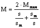unde, Mmax reprezinta valoarea maxima a cuplului, iar sm alunecarea corespunzatoare acestui cuplu.