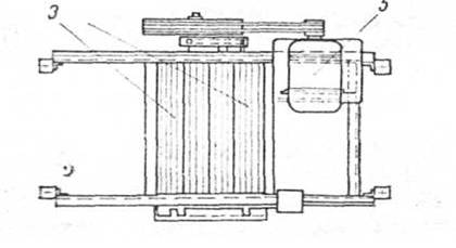 Zdrobitorul (fig. 2.14.) de tipul cu cilindrii canelati este format dintr-un cadru metalic 1 pe care sint montate patru valturi canelate 2 antrenate de catre roata dintata libera 3 prin intermediul cuplajului de frictiune 4 axul 5 si rotile dintate 6 .Cele patru valturi sint imbracate in exterior cu o camasuiala de otel inoxidabil. Valturile extreme sint montate pe bucse excentrice de fonta, care permit, prin rotirea lor, reglarea distantei dintre ele si valturile fixe.