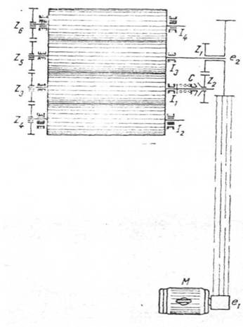 Antrenarea bucsei cu palete 5 a scurgatorului de ciorchini este realizata de catre electromotorul M2 prin intermediul rotilor de curea C3 si C4 si a unei curele trapezoidale.