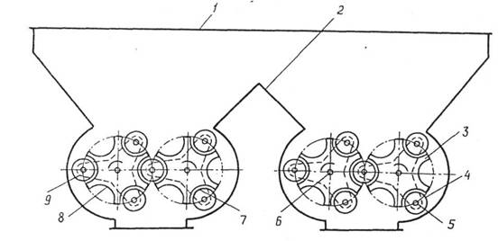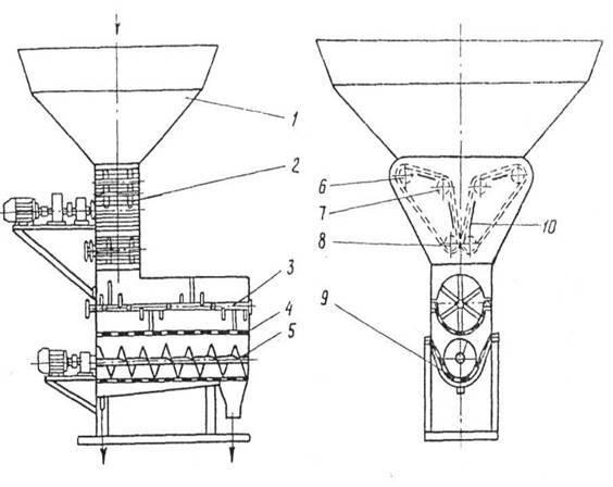 Acest zdrobitor (fig. 2.3) este de tip cu patru valturi cilindrice cu caneluri drepte. Se compune din buncarul de alimentare1.
