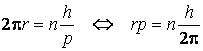 Se poate observa ca primul postulat al lui Bohr se poate obtine pe baza formulei (8.2), admitand existenta numai a acelor orbite stationare ale electronului in atom pentru care este satisfacuta conditia de stationaritate a undelor de Broglie asociate miscarii electronului. Aceasta inseamna ca lungimea orbitei din teoria lui Bohr trebuie sa fie egala cu un numar intreg de lungimi de unda asociate: