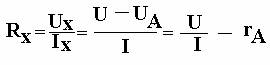 Pentru montajul aval (fig. 2 a) masurarea rezistentei Rx se face cu relatia: