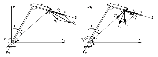 a reperului mobil Oxy) iar bara rotindu-se în jurul lui OA