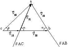 Rezolvare : Miscarile celor trei corpuri fiind rotatii în plan (corpurile 1 si 3) sau miscari plan-paralele (corpul 2) vitezele unghiulare sunt perpendiculare pe plan astfel încât miscarea corpului (2) rezulta ca o compunere de rotatii paralele :