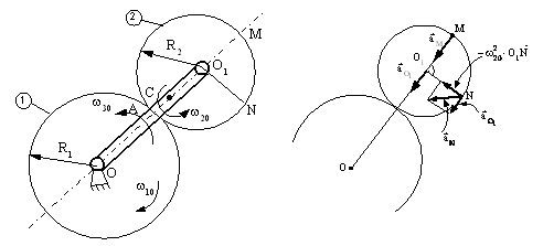 Directiile si sensurile acceleratiilor punctelor M si N, determinate în conformitate cu relatia (8), sunt prezentate în figura R 11.4.2. iar modulele lor sunt :