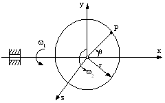 bratul CD care, de asemenea, se roteste cu viteza unghiulara