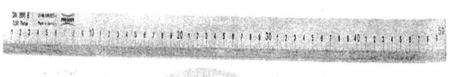 Scara milimetrilor, cu diviziuni din mm in mm si numerotate din 5 in 5mm;