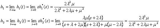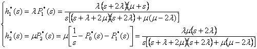 din starea de functionare 1 in starea de defectare 2 si cu h2(t) probabilitatea trecerii sistemului din starea de