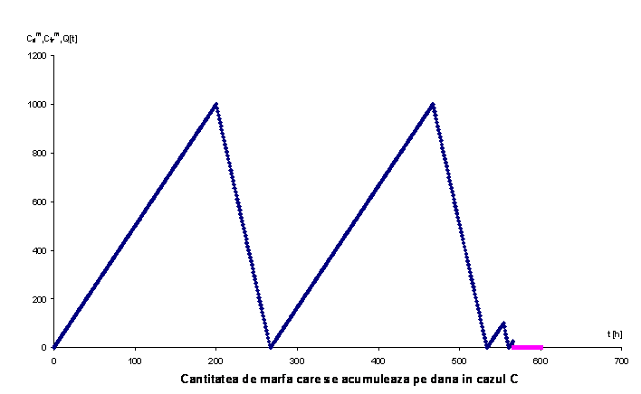 În acest caz productivitatea de exploatare a macaralei este fixata astfel încât descarcarea marfurilor sa fie încheiata în momentul în care cantitatea de marfa acumulata pe dana ajunge la nivelul maxim, adica la capacitatea de descarcare a navei.