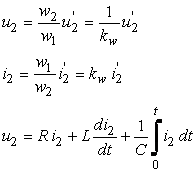 Modelul matematic al transformatorului raportat se obtine din modelul matematic simplificat, sistemul (2.12), prin inlocuirea parametrilor infasurarii secundare: