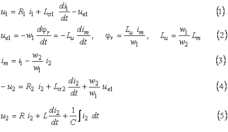 Considerand neglijabile caderile de tensiune pe rezistentele si inductivitatile de dispersie ale infasurarilor din ecuatiile (1) si (4) ale modelului matematic (2.12):