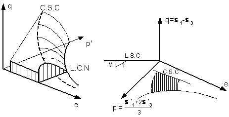 unde p`c este efortul corespunzator intersectiei dintre planul de volum constant cu linia de stare critica.