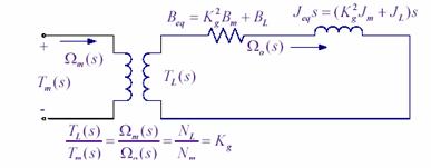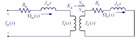 Figura urmatoare arata circuitul electric analogic cu coeficientul de frictiune al armaturii si inertia privitoare la viteza secundara combinata cu frictiunea si inertia de sarcina.