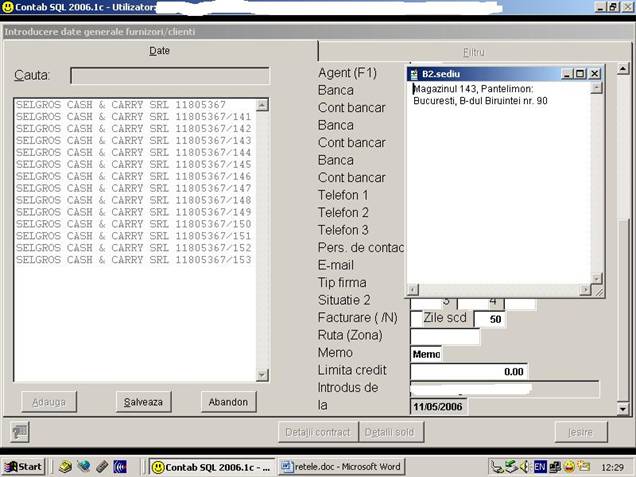 In campul MEMO se completeaza pentru fiecare magazin in parte adresa de livrare. Acesta poate fi tiparit pe factura, iar in baza de date are numele SEDIU
