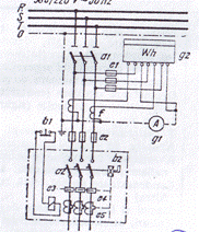 Astfel de scheme se utilizeaza pe scara largapentru simplificarea reprezentarii alcatuirii unui tablou de distributie. Pentru tablourile echipate numai cu intreruptoare cu actionare manuala, circuitele de siguranta si cel mult aparate de masurat, acest mod de reprezentare este sufficient. In fig. 12 se reda schema monofilara a unui tablou simplu de distributie, suficienta pentru citirea si echiparea electrica respectiva.