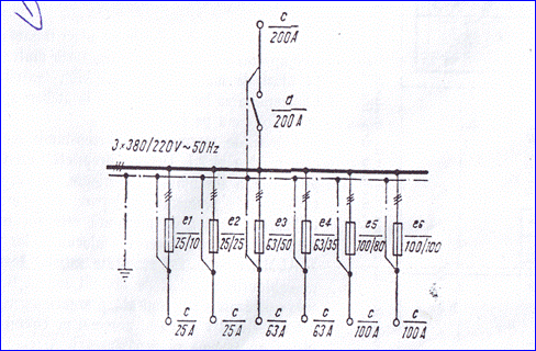 (In fig este reprezentata schema electrica monofilara simplificata a unui tablou de distributie).