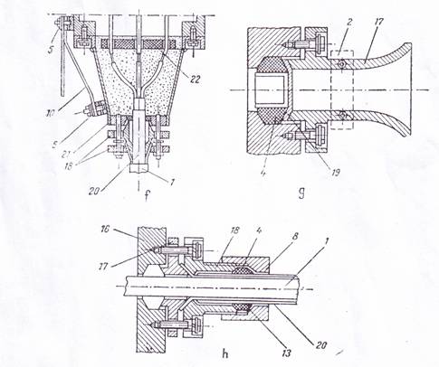 Intruducerea cablurilor In dispositive de racordarese poate executa prin record filetat cu presgarnitura cu garnitura de etansare din cauciuc( fig. 13,a.h ), fie prin mansoane de cablu umplute cu masa de etansare (fig.13,f). Orificiile de racordare trebue sa se deschida numai din afara sis a fie asigurate contra slabirii, fara sa supuna cablul la eforturi de intindere sau torsiune.
