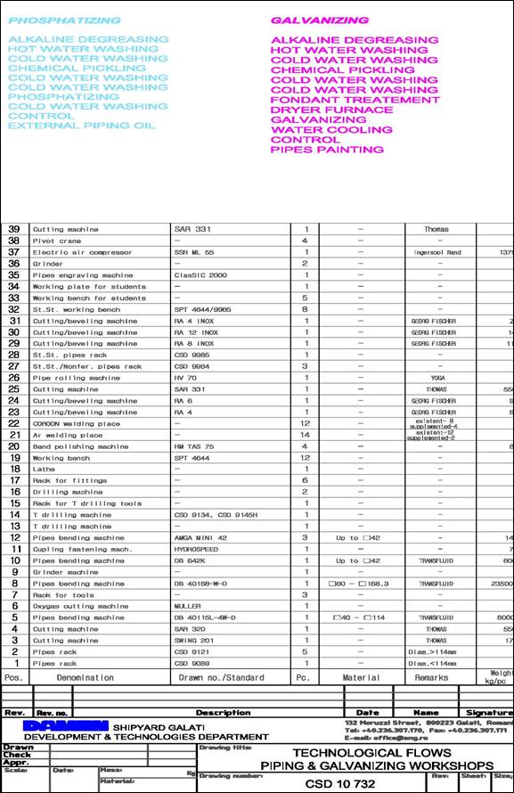 Dipunand de intreg setul tehnic de facilitati pentru profilul sau, de o forta de munca adecvata, Santierul Naval Galati este un partener serios pentru orice armator si societate de clasificare.
