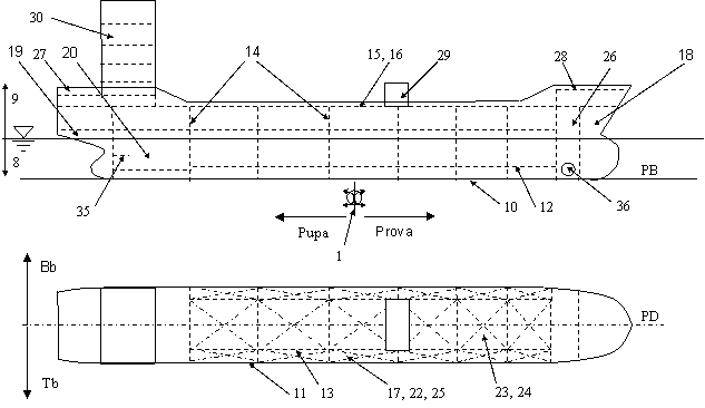Toate corpurile de nava sunt simetrice in raport cu un plan longitudinal, care in conditii normale de plutire este vertical = plan diametral P.D.