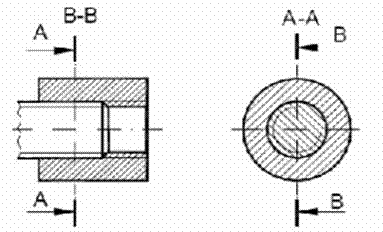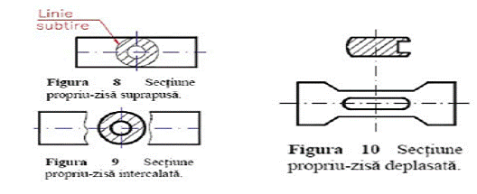 b) Sectiune propriu-zisa suprapusa, cand sectiunea se dispune peste conturul piesei respective, (figura 8). Ea se traseaza cu linie continua subtire, iar traseul de sectionare cu linie-punct subtire, el reprezentand si axa de simetria piesei.