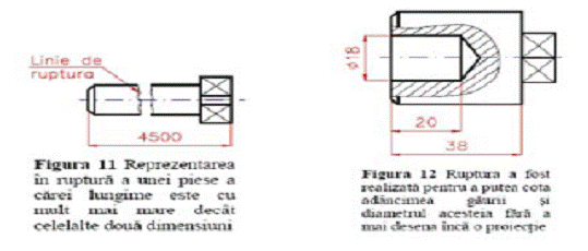 Ruptura se executa in doua scopuri: a) Reducerea spatiul necesar pentru desenarea pieselor de profil constant, in cazul in care acestea sunt foarte lungi, (figura 11). Daca este necesar, in zona de ruptura poate fi asezata o sectiune propriu-zisa intercalata.