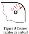 Linia de cota poate avea sageata doar la un singur capat cand se coteaza razele de curbura (figura 5). In acest caz celalalt capat este pozitionat in centrul razei, centru care poate fi balustrat, ca in exemplul nostru, sau nu.