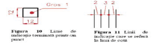 - Cand spatiile afectate cotarii nu permit inscrierea cotelor se folosesc linii de indicatie (figura 11).