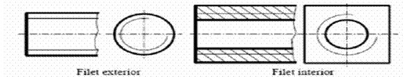 - Muchiile fictive (apar acolo unde sunt racordari) se traseaza cu linie continua subtire, fara a intersecta liniile de contur.