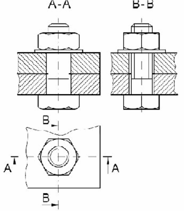 Regula privind desenarea in vedere a piulitelor si saibelor standardizate sectionate longitudinal se concretizeaza in desenele de ansamblu.