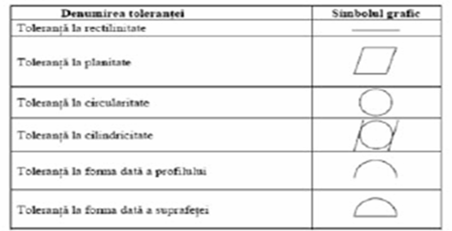 Simbolurile tolerantelor de forma sunt redate in tabel.