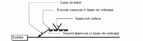 Linia de reper este o linie continua subtire avand la capat o sageata ce indica sudura. In prelungirea acesteia, paralel cu chenarul, se traseaza linia de referinta continua si cea intrerupta.