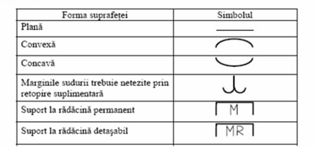 Simbolul principal se refera la tipul sudurii, definit de forma suprafetei.