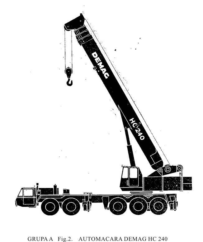 1.11 Automacara = poate fi pe pneuri sau cu senile. Pe platforma autovehicului este montata de obicei o macara invartitoare cu brat basculant, actionata de la motorul acestuia.