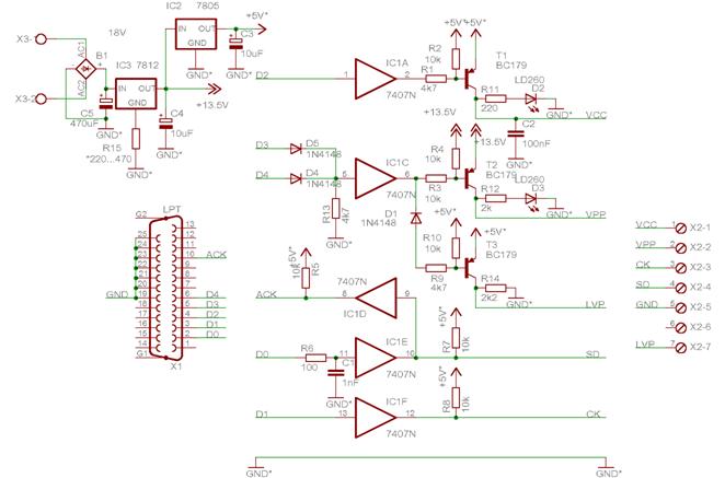 Descrierea detaliata a schemei de mai sus se gaseste in cap1. al cartii: "Microcontrolere pentru toti" de V.Surducan si W. van Ooijen. Software-ul de comanda este disponibil pe CD-ul anexat cartii sau direct downloadabil de pe internet.