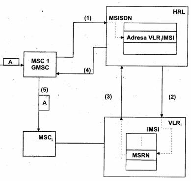 Odata determinat MSCi, urmatorul pas îl va reprezenta rutarea apelului între MSC1 si MSCi. Pentru aceasta este necesara obtinerea identitatii MSC, adica a numarului MSRN (Mobile Station Roaming Number), a carui semnificatie va fi detaliata ulterior. Numarul MSRN este obtinut în urma dialogului MSC1 -> HLR -> VLRi -> HLR -> MSC1, dialog reprezentat în figura 1 prin succesiunea de proceduri (1), (2), (3), (4) al caror rol functional este detaliat în continuare: