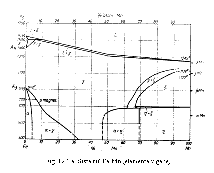 -gene, care deschid sau largesc domeniul austenitic si-l reduc pe cel feritic (Mn, Ni, Pt, C, N, etc.-prin ridicarea punctului A4 si coborârea lui A3, iar Co prin ridicarea ambelor puncte critice);