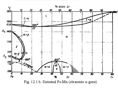 a-gene, care închid sau îngusteaza domeniul austenitic largindu-l pe cel feritic (Si, Mo, W, Ti, V, etc. prin coborârea punctului A4 si ridicarea lui A3 , iar Cr prin coborârea ambelor puncte critice).