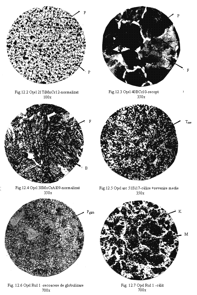 În fig.12.2 se prezinta structura acestui otel, în stare recoapta, alcatuita din ferita si perlita cu granulatie fina.