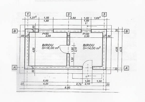 Se cere sa se reprezinte planul cladirii de mai jos la sc.1 : 50.