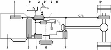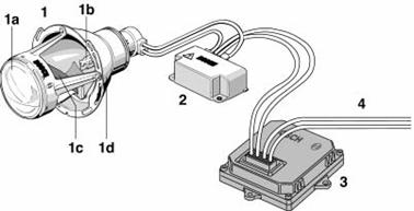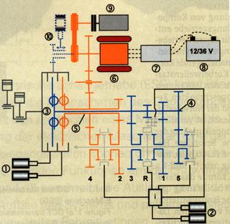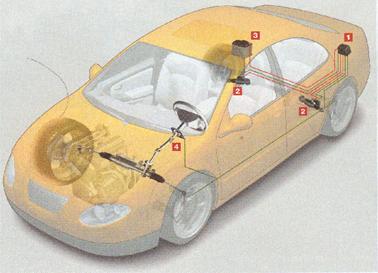 1-Regulator 2- Levier de ghidare cu actuator electric 3- baterie 4-sensorul unghiului de rotire a volanului